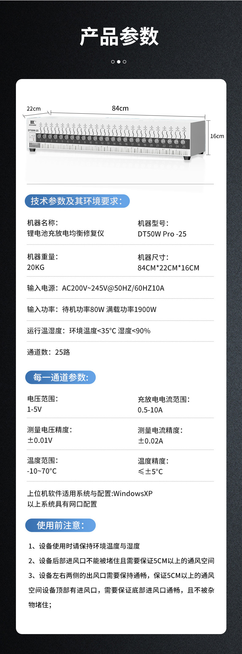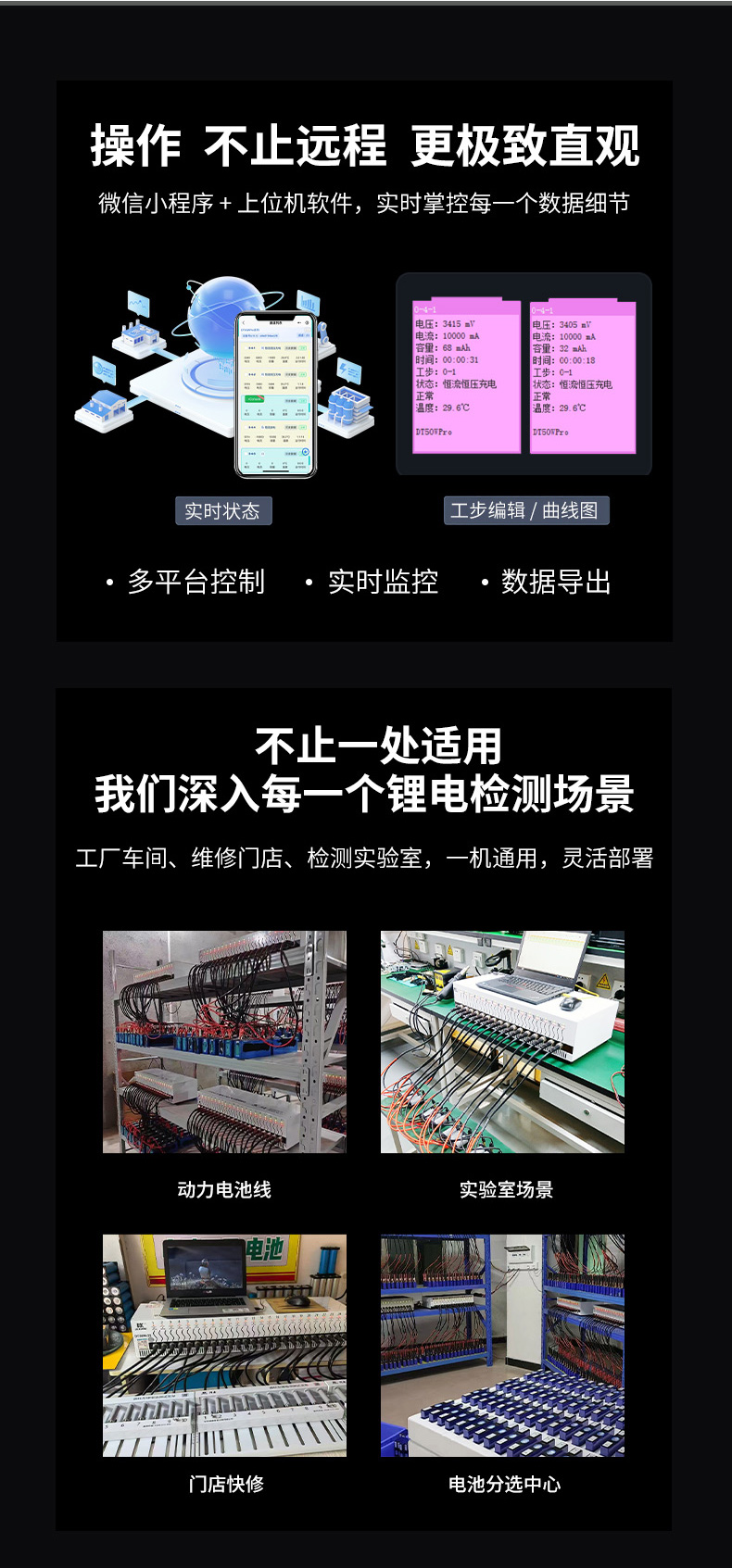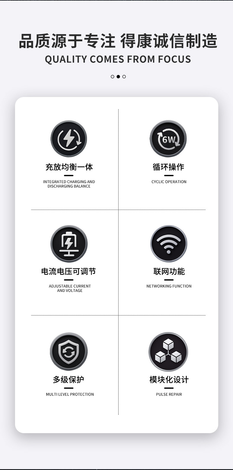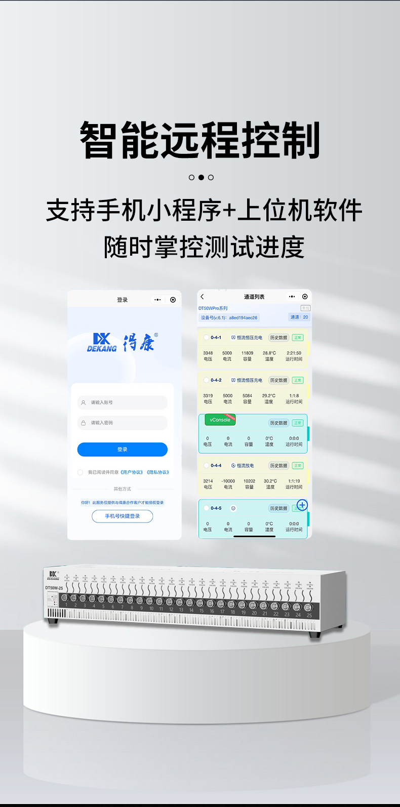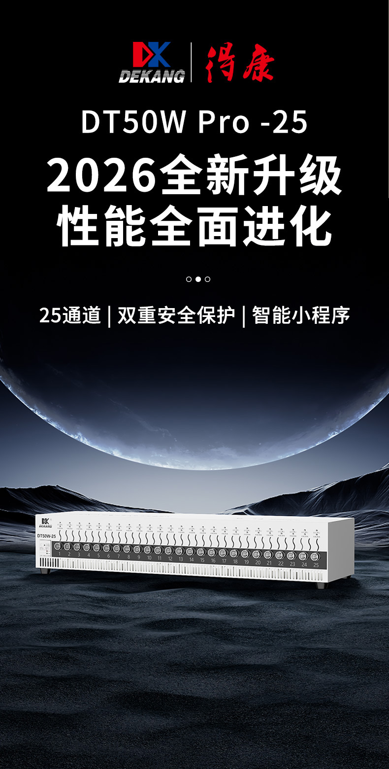 得康25路5V10A锂电池检测分容仪,这款锂电池检测仪可以使用小程序远程连接设备,控制设备对电池进行充放电测容均衡,也可以使用电脑连接本地多台设备操作,隔离不共地设计,每一路独立电源主板!电流电压精度可以到小数点后三位,不拆解电池组连接线即可检修,具有充放电,一键均衡,测试容量,内阻检测,分容筛选配组,循环测试,防反接,数据保存曲线分析等功能,一台电脑软件可控制多种型号联网设备,对多个通道进行批量并行操作,方便快捷。电压1~5伏之间可以自己调节,电流0.5安到10安之间可以调节。